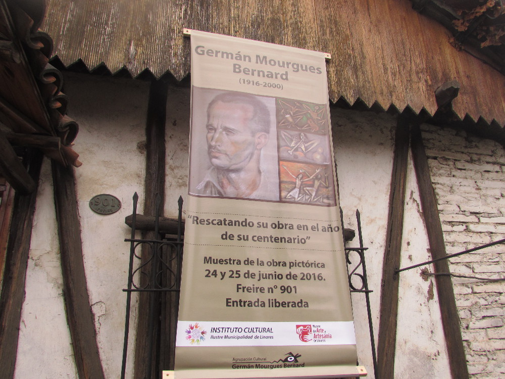 Día del Patrimonio Cultural 2018Con motivo del Día del Patrimonio Cultural 2018, se abrió al público parte de la casa de Germán Mourgues, ubicada en Freire 901 esquina con Yerbas Buenas, en Linares. En la muestra se pudieron apreciar pinturas, esculturas y artesanía del artista. |