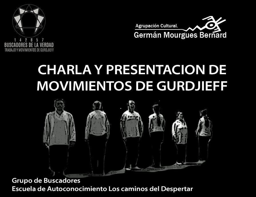 Charla Escuela "Los Caminos del Despertar"La Escuela de Autoconocimiento "Los Caminos del Despertar" realizó una charla y presentación sobre "Los Movimientos y Danza Sagrada de Gurdjieff" en las dependencias de la Agrupación Cultural Germán Mourgues Bernard a las 19:00 horas. |